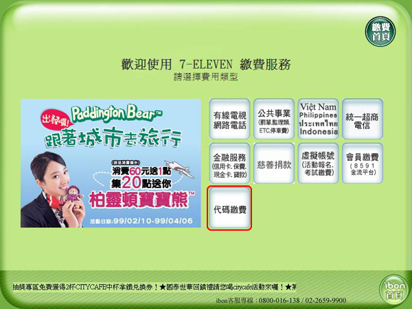 2.選擇「代碼繳費」