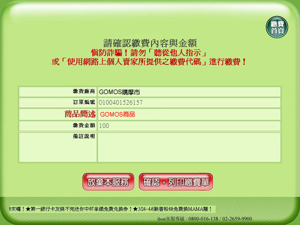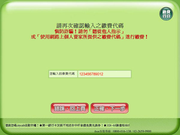 5.再次確認繳費代碼